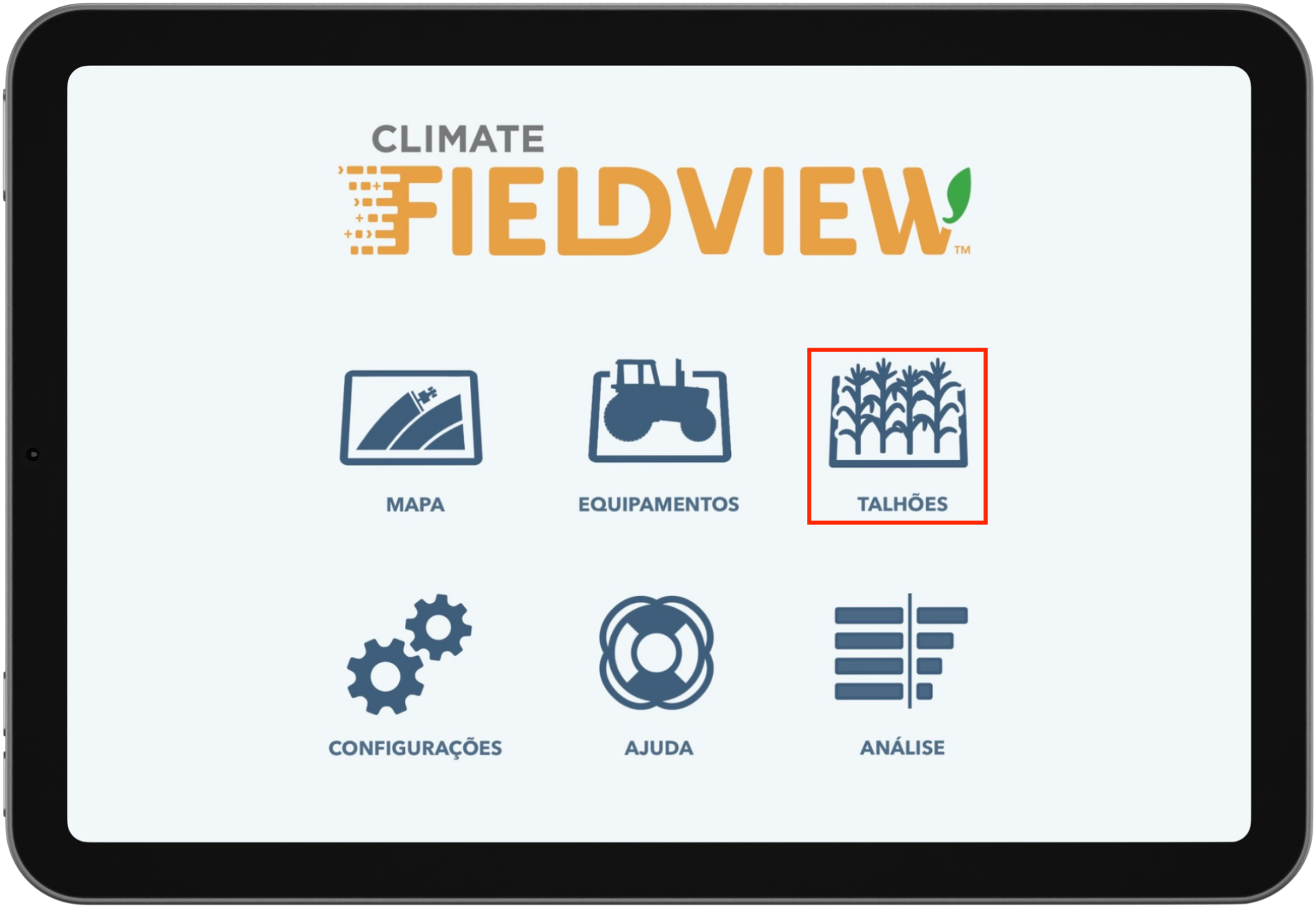 💡 Dica: se você ainda não tiver uma aplicação criada, o app vai direcionar automaticamente para a criação de uma nova. Depois disso, ela já aparece para seleção. (Consulte aqui como criar uma aplicação no FieldView™ Cab app)