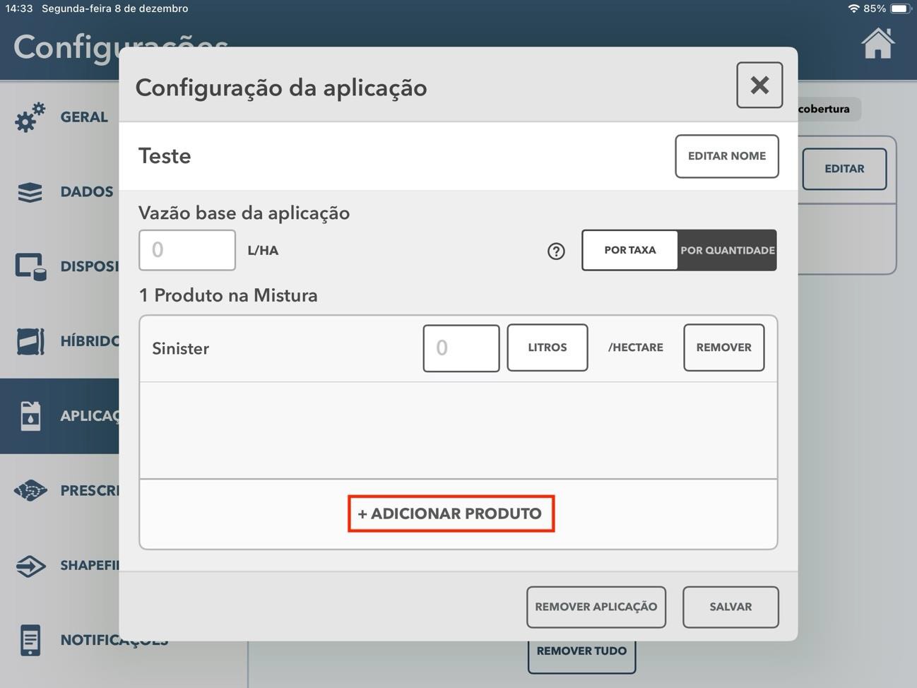 Observação: Se você editar enquanto está pulverizando, os relatórios passam a considerar a alteração apenas dali para frente (os dados já coletados não mudam).
