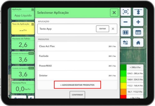 Os produtos e suas quantidades podem ser alterados a qualquer momento dentro do aplicativo FieldView™ Cab:
