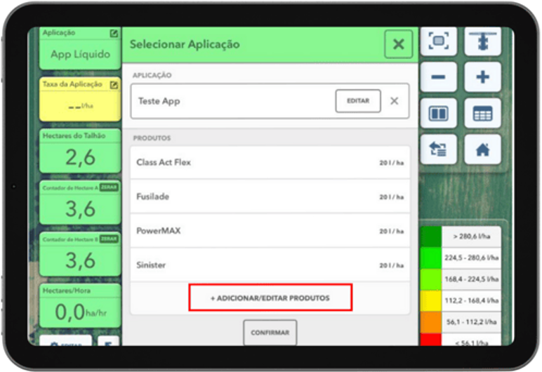 💧Os produtos e suas quantidades podem ser alterados a qualquer momento dentro do aplicativo FieldView™ Cab: