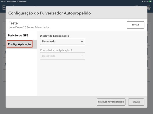 10. Por último, ainda na página de configuração, clique na aba Configuração Aplicação. Selecione o Display de equipamento e o Controlador de Aplicação.