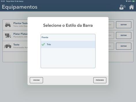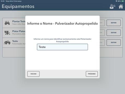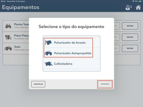 3. Selecione o tipo do equipamento. Neste caso, vamos simular com um Pulverizador Autopropelido.