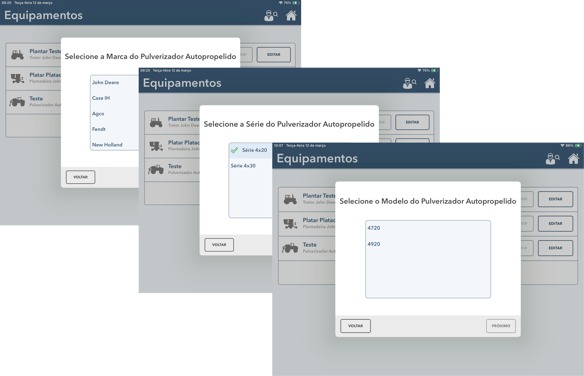 4. Selecione a marca, a série e o modelo do pulverizador.