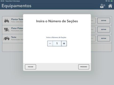 Veja como cadastrar uma pulverizadora no aplicativo FieldView™ Cab - iOS.