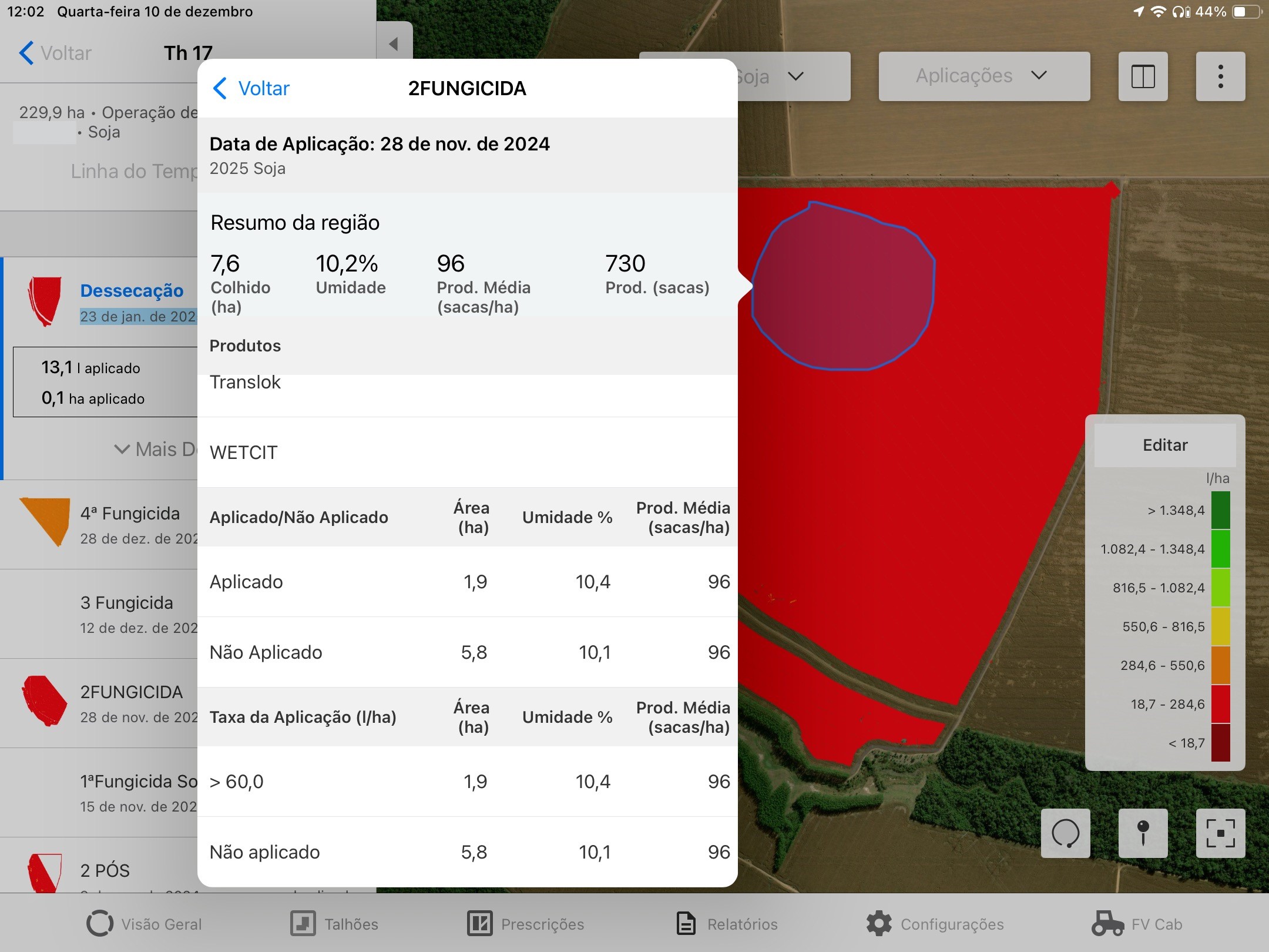Os Relatórios de Sub-talhão por Taxa de Aplicação ajudam você a validar o impacto das taxas aplicadas na produtividade, considerando condições específicas de solo, clima e pressão de plantas daninhas dentro daquela região.