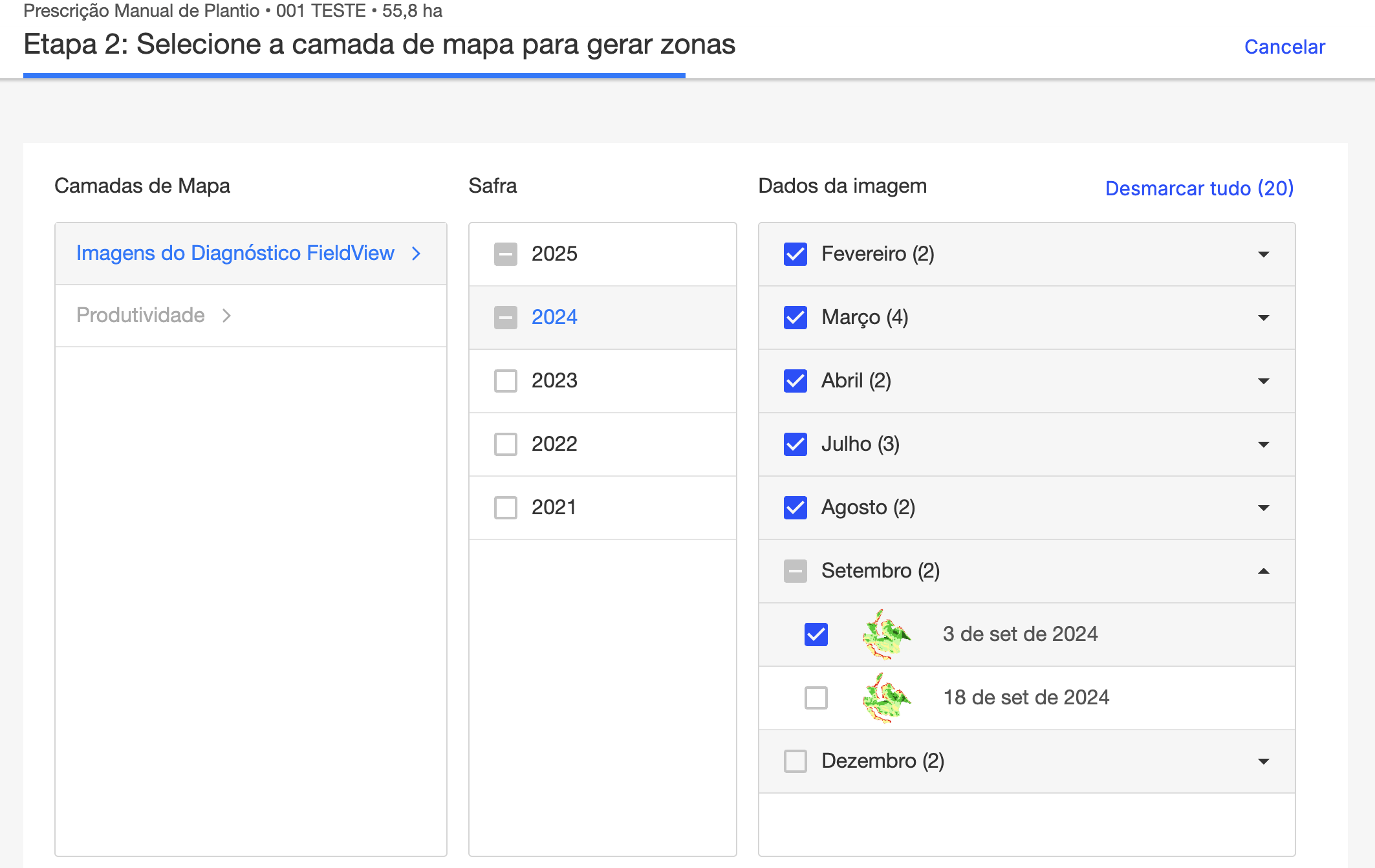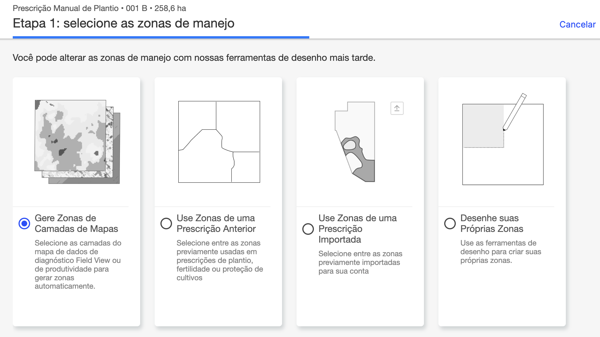 Neste exemplo, trata-se de uma nova prescrição manual, portanto, foi selecionado Desenhe suas próprias zonas.