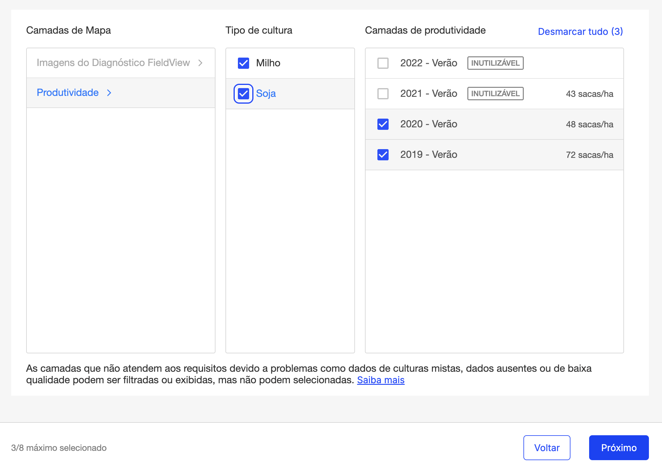 Passo 3: Selecione o talhão com o qual deseja começar.