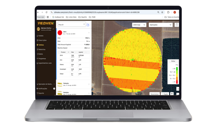 Relatório completo das aplicações na fazenda em poucos cliques Durante a operação, acompanhar o que está acontecendo em detalhes é fundamental – saber o que foi aplicado, em qual taxa, acompanhar velocidade média, etc. Quanto mais informação, mais qualidade: o produtor protege não só a lavoura mas também o investimento feito. O novo relatório de aplicação permite que o produtor acesse dados relevantes que antes só estavam disponíveis no celular! Veja, em poucos cliques: talhões aplicados, data da última aplicação, taxa média e quantidade de produtos, velocidade média, e muito mais!