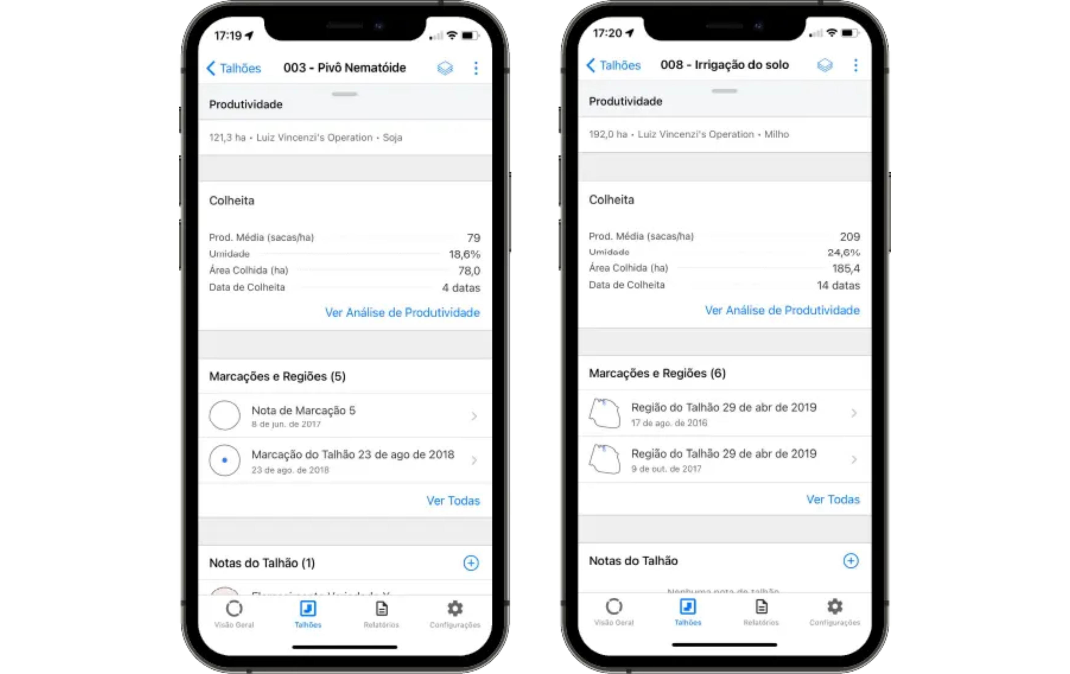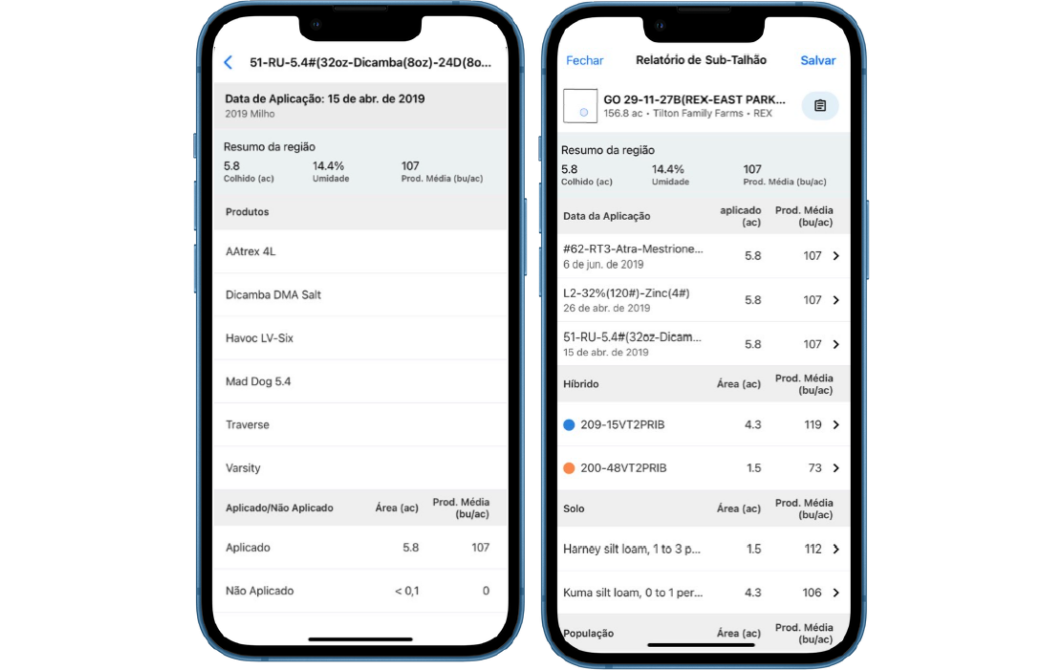 Habilidade de identificar produtos específicos na sua fazenda com o Relatório de Região de Campo; Avaliar o seu investimento em defensivo agrícola visualizando o impacto na sua produtividade no Relatório de Região de Campo.