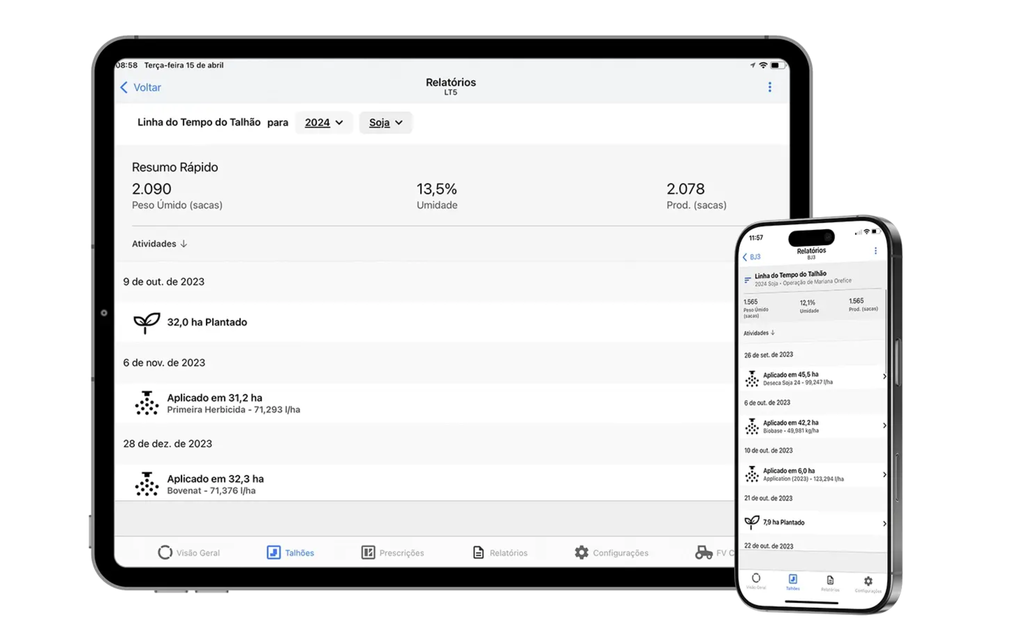 Explore informações relevantes com a nova Linha do Tempo do FieldView. Esta atualização torna os dados em nossos relatórios mais acessíveis e interativos, permitindo que você visualize links diretos entre as atividades listadas e os mapas ou relatórios correspondentes. Isso facilita a análise e a tomada de decisões, proporcionando uma experiência mais rica e informativa. Esta funcionalidade está disponível apenas no aplicativo preto para iOS. Para utilizá-la, é necessário ter pelo menos um dado da safra 2025. O acesso deve ser feito a partir da aba de talhões, garantindo que você tenha todas as informações necessárias ao seu alcance.